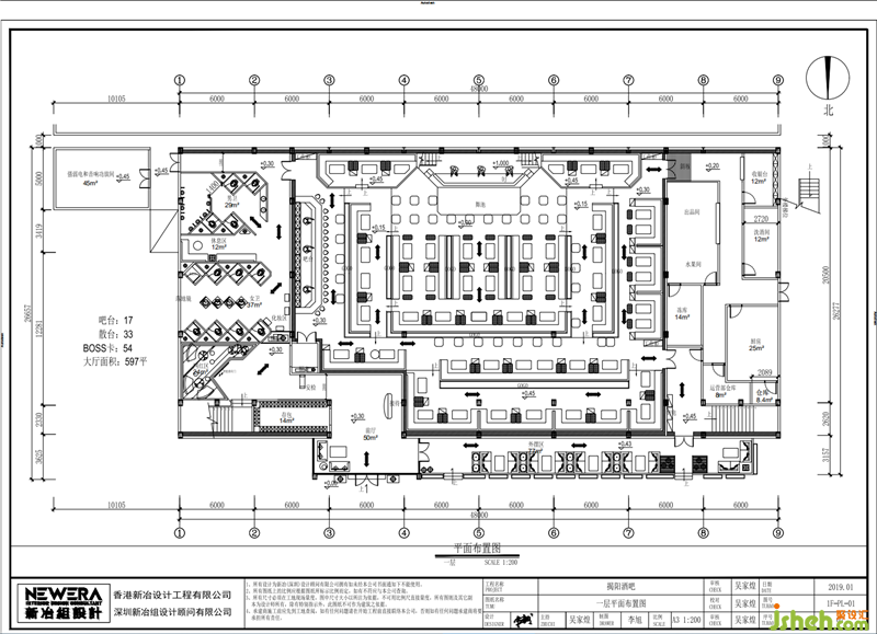 After entering the reception area of the bar, you will enter another space in a trance. In the interpenetration of the copper color scaffold matrix and the feeling of multiple cut planes with hollowed volumes, angular elements are used to match the well-arranged light strips with lines, so as to shape bony space. The corridor is like a time tunnel, but it has a strong sense of elegance and delicacy, connecting the PARTY site to all areas. Through the quiet hallway tunnel, there is the largest area in the whole project: PARTY district, about an area of 1,200 square meters, the height of 15 meters super giant hall, the hollow column design, the depth of the whole space and visual impact let a person off guard at the moment, no matter which angle you stand in, the field of vision can easily permeate the whole site.
