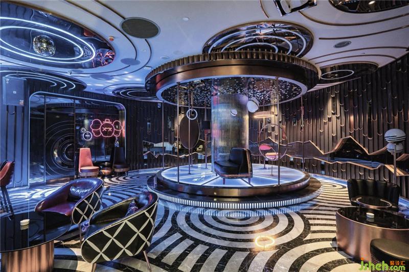 在參考方案期間,新冶組設(shè)計(jì)團(tuán)隊(duì)大膽參考日式枯山水,枯山水多以在砂石上掃出漣漪式、波浪式、旋渦式或回紋式等同的平行線條呈現(xiàn)。本案設(shè)計(jì)中,大廳及公區(qū)的天花設(shè)計(jì)中,均加入此元素,以智能燈帶修飾,讓文化藝術(shù)加以科技的的輔助,讓KTV娛樂(lè)空間藝術(shù)獲得一場(chǎng)新的變革。會(huì)所設(shè)計(jì)
