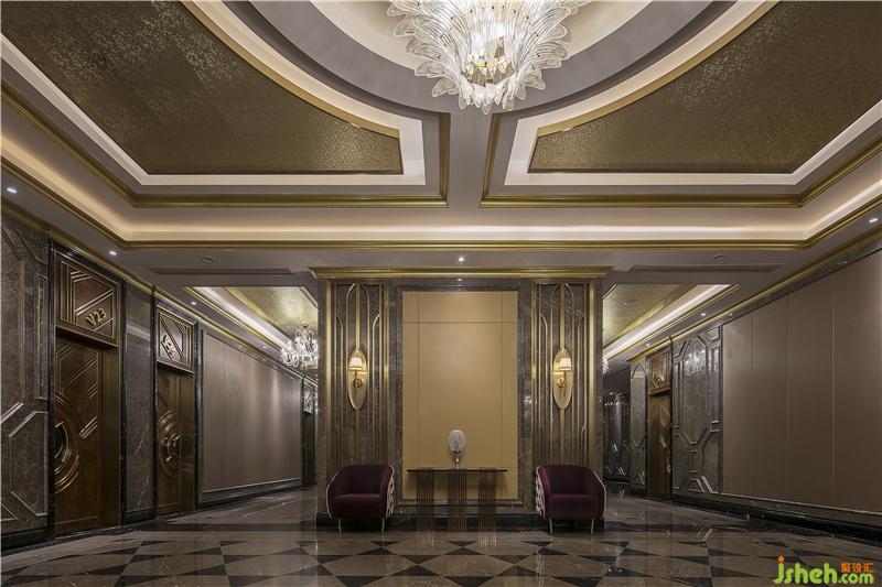 大量的金色裝飾及其線條體現(xiàn)空間的奢華,