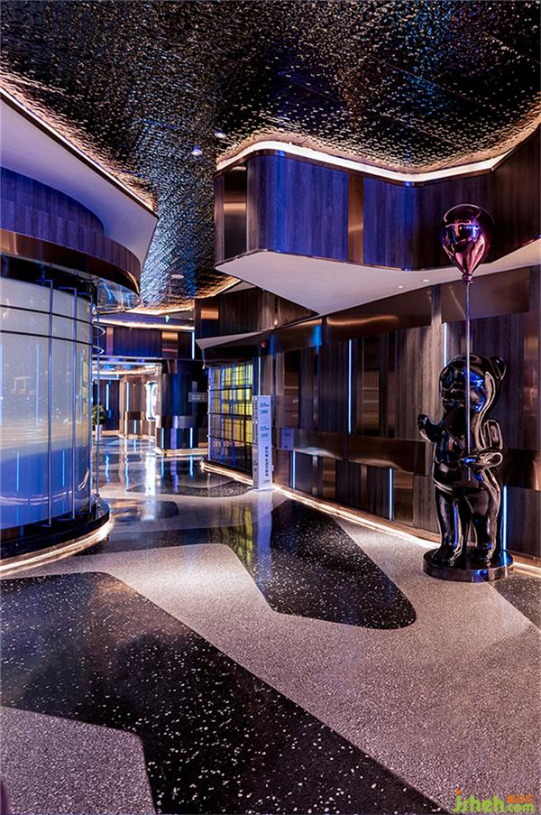 建筑大師雷姆.庫(kù)哈斯曾說(shuō),“形式不是設(shè)計(jì)的出發(fā)點(diǎn),而是創(chuàng)作的結(jié)果”。在前區(qū)入口、大廳接待、水吧、展示區(qū)及休息區(qū)、過(guò)道等公區(qū),設(shè)計(jì)師順勢(shì)于項(xiàng)目生長(zhǎng)條件,確立了疊層峽谷的創(chuàng)意理念及主題,這一主題將前區(qū)過(guò)于狹長(zhǎng)的劣勢(shì)化為了優(yōu)勢(shì)及特點(diǎn),為人們進(jìn)入正式消費(fèi)前做好了心理及情緒上的充分“前戲”鋪排。藝術(shù)裝置、多媒體互動(dòng)投影、潮玩品展示區(qū),酒吧設(shè)計(jì)皆成為峽谷漫游中的視覺(jué)、觸覺(jué)等感官景點(diǎn)(情緒交互觸點(diǎn)),在轉(zhuǎn)換消費(fèi)者緊張、焦慮、疲憊等日常情緒模式的同時(shí),不斷激發(fā)、挑動(dòng)、醞釀著即將到來(lái)的娛樂(lè)心情!