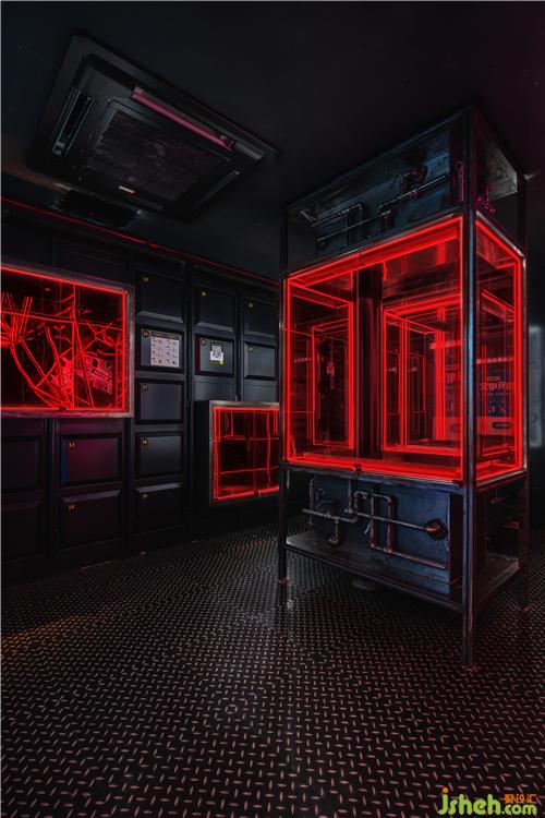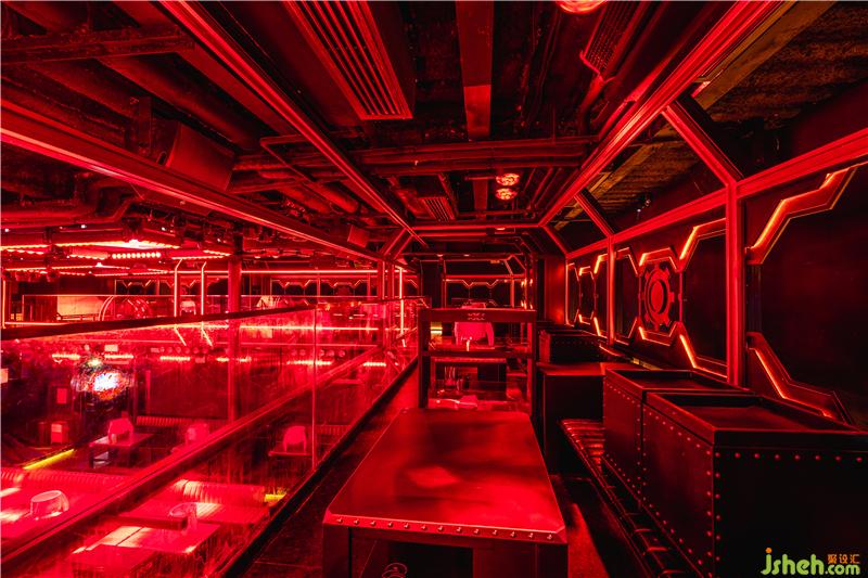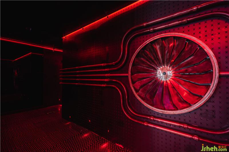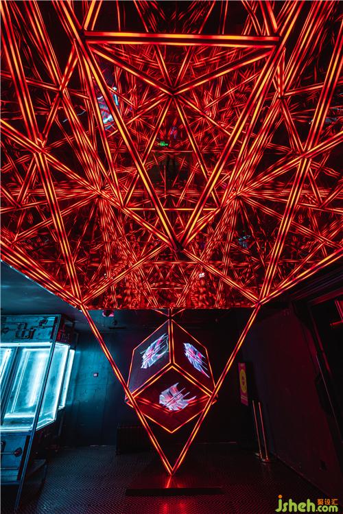 改造從門(mén)頭開(kāi)始,原有的一面墻被改置,處理得通透,對(duì)外形成焦點(diǎn),外觀轉(zhuǎn)角設(shè)挑檐深圳酒吧設(shè)計(jì),放置火星裝置加IP呈現(xiàn)主題,預(yù)示著太空艙開(kāi)啟。前廳過(guò)道猶如按啟動(dòng)艙?;w多,高低差的劣勢(shì)為特點(diǎn),結(jié)合柱體做裝置,天花高處的倒三角造型的燈光藝術(shù)裝置,結(jié)合周?chē)R面反射形成視覺(jué)焦點(diǎn),正對(duì)入口設(shè)置立體屏象征著主能量核心。為打造輸送“能量”到大廳的通道,墻面通過(guò)鋁管、燈具及風(fēng)葉造型藝術(shù)裝置等引導(dǎo)和輸送,同時(shí)用造型鋁板打底墻面,保證機(jī)械感的美學(xué)統(tǒng)一性。