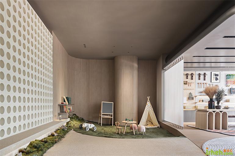 Wandering in the free, interactive central plaza, and passing through the unrestrained space, one will encounter children's paradise, which records the happy, innocent smiling faces of kids playing here. Visitors are invited to sit on the stepped seats leisurely, to watch the subtle interaction between people and space. TOMO DESIGN tries to approach the space through visual imagery, to create resonance with the spiritual world.