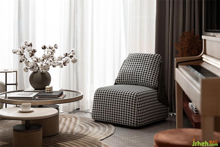 This home is a combination of passion, practicality and intimacy, bringing a sense of belonging. The spatial layout for shared activities and the interactive bar counter-featured dining room add more fun to life. The boundary between balcony and living room is blurry yet continuous, facilitating the creation of fun life scenes. As night falls, playing gentle rhythms on the piano create warm, leisurely moments. Isolated from the outside world, the home offers truly pleasant multi-sensory experiences.