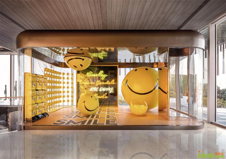 主立麵玻璃磚材料的運用,營銷中心設(shè)計以商業(yè)藝術(shù)化的視覺呈現(xiàn),可調(diào)節(jié)發(fā)光燈箱作為吸睛點的同時,彰顯著“COSMO LIFE”的理念內(nèi)核,讓時尚成為一種可感知的具象體塊。大型藝術(shù)裝置“都市錶情”,以標誌性的笑臉裝置作為商業(yè)氛圍的呈現(xiàn),營銷中心設(shè)計帶來強烈且有記憶點的視野沖擊,同時傳達著積極樂觀的生活態(tài)度:城市需要陽光快樂與積極的態(tài)度!