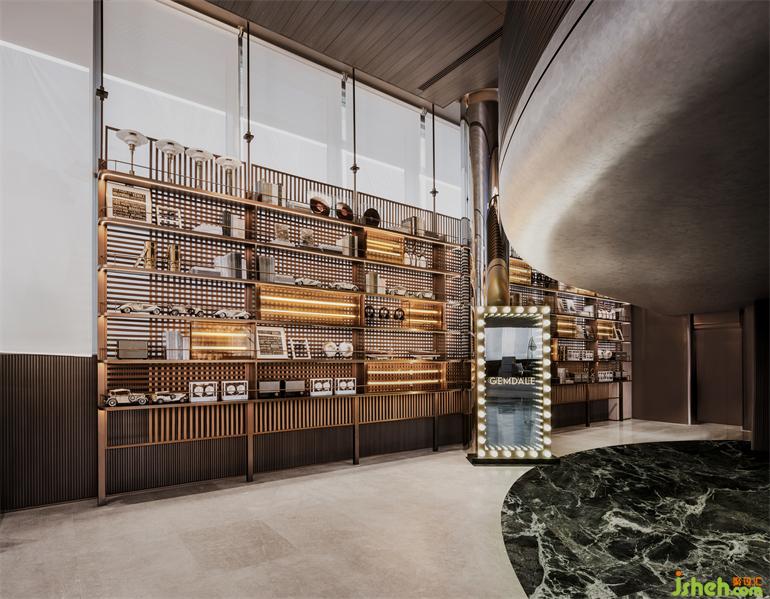 Arc-shaped elements permeate the reception desk. The gentle, textured metal-like arc-shaped background panel gives the space a sense of sculpture, whilst showing a unique aesthetic logic. The floral installation above, composed of textured metal and elegant floral art and continuing arc-shaped expressions, further reveals the noble touch of the space and interprets a luxury style through details.