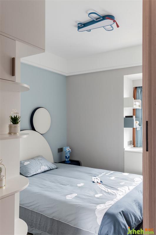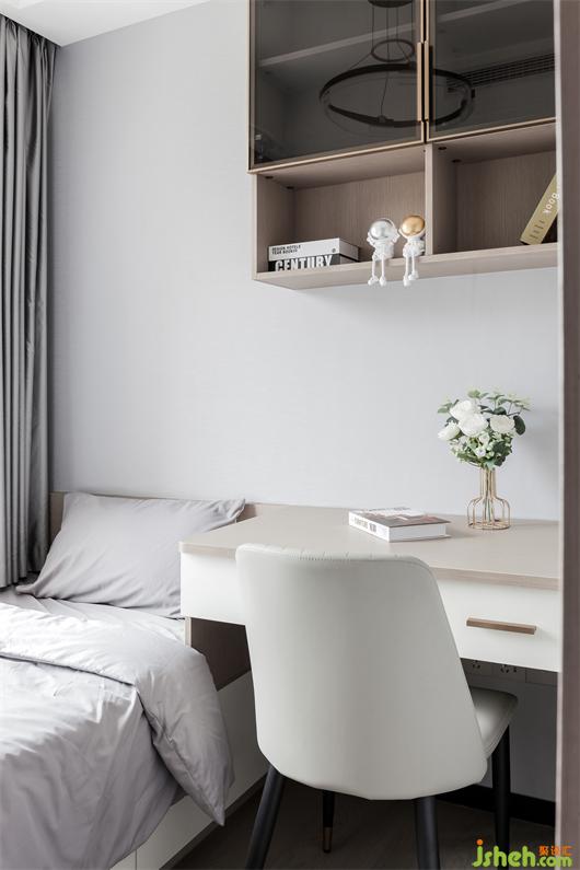 城市的繁忙與喧囂,在進(jìn)入主臥的一刻,戛然而止,清新溫暖色調(diào)的主臥舒緩了一整天的疲憊。