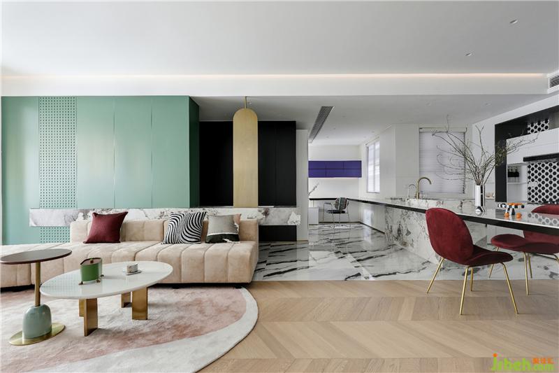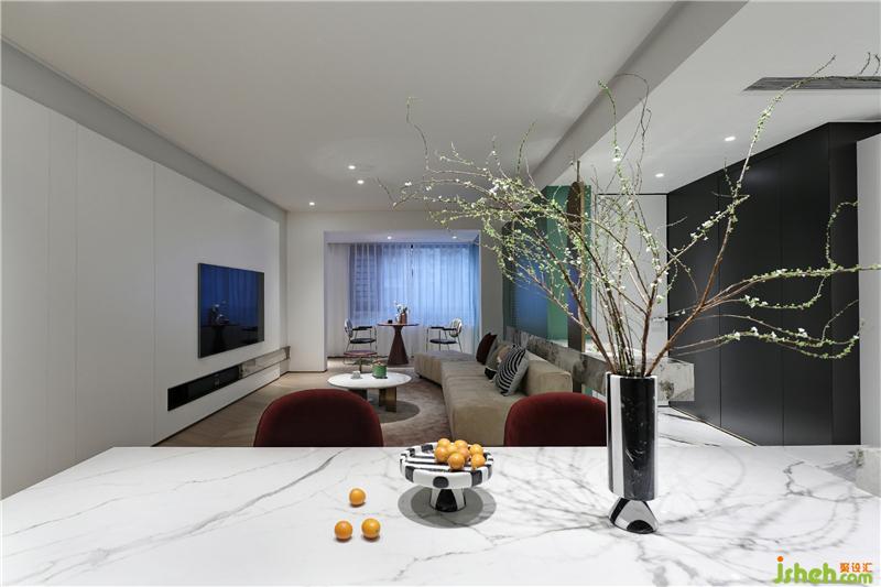 本案以色彩為線索,在現(xiàn)代主義美學(xué)基礎(chǔ)上,以雅白為背景,融入繽紛色彩,成就本案的獨(dú)特藝術(shù)風(fēng)格。春暖花開陽光系的黃,秋日余暉浪漫風(fēng)的粉,生機(jī)勃發(fā)熱帶雨林式的綠,深邃明凈大海般的藍(lán),這些最接近自然的顏色,搬進(jìn)居家環(huán)境之中,回應(yīng)著人們對(duì)于都市自在生活的向往和期盼。