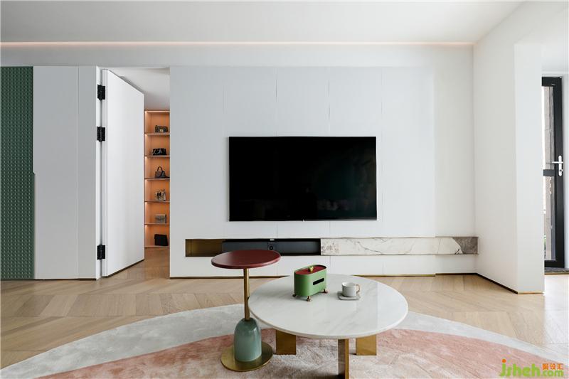 家庭的居住空間,就應(yīng)該契合居住者的生活理念,滿足居住者的生活需求,而定制化設(shè)計(jì),刻畫一個(gè)人與空間的共存關(guān)系。客廳電視背景墻隱藏衣帽間,擴(kuò)大儲(chǔ)物面積,空間更顯簡(jiǎn)潔清爽。