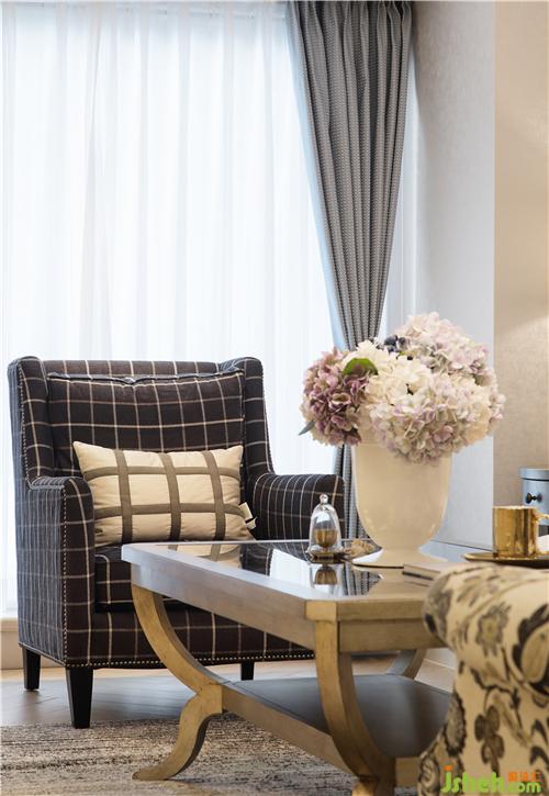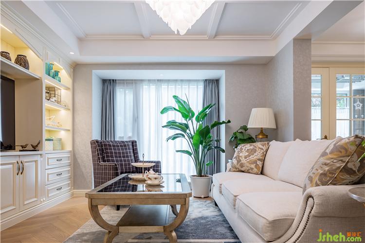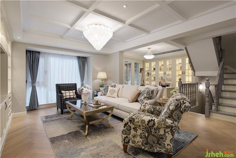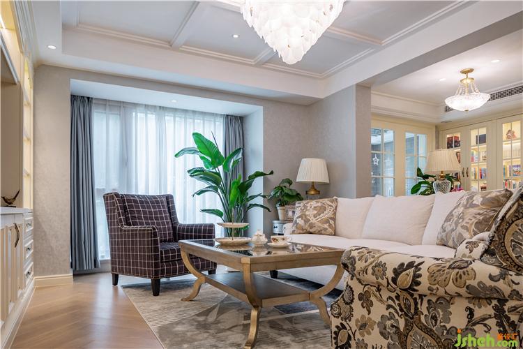 客廳采用嵌入式石膏吊頂,搭配精致的吊燈,復(fù)古造型的組合沙發(fā),讓現(xiàn)代美式風(fēng)格得以進(jìn)一步的彰顯。