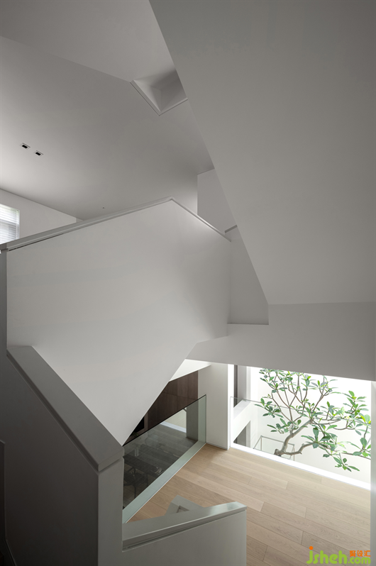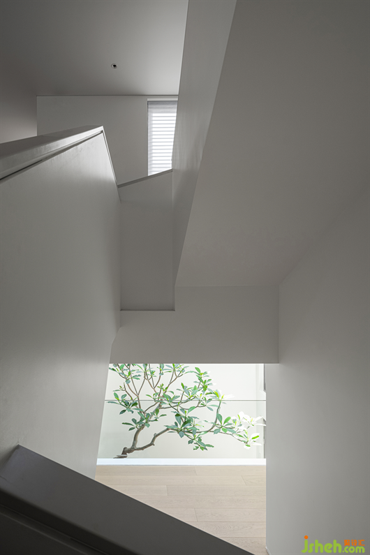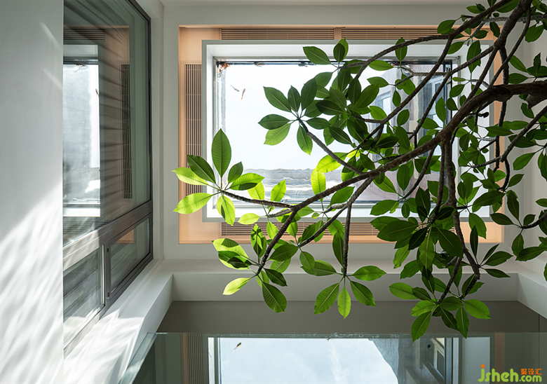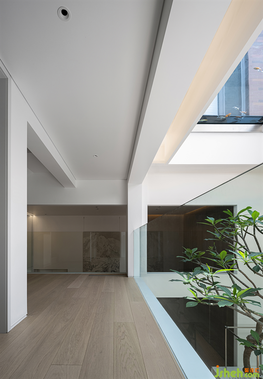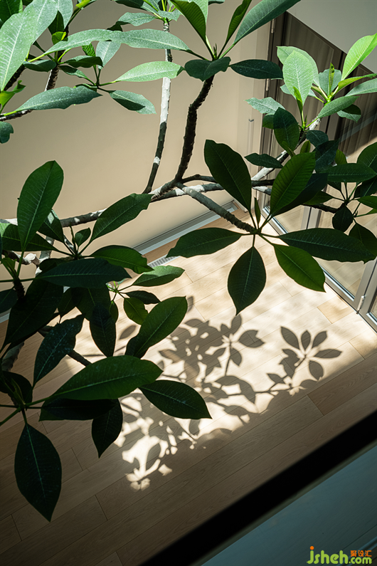 拾階而下來(lái)到負(fù)一樓,一道光源若隱若現(xiàn),探頭望去便有另一番景象,映入眼簾的是一片自然天光,直射著一棵充滿生機(jī)的樹,宛如大自然揮灑的天然色盤。