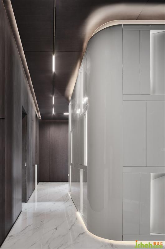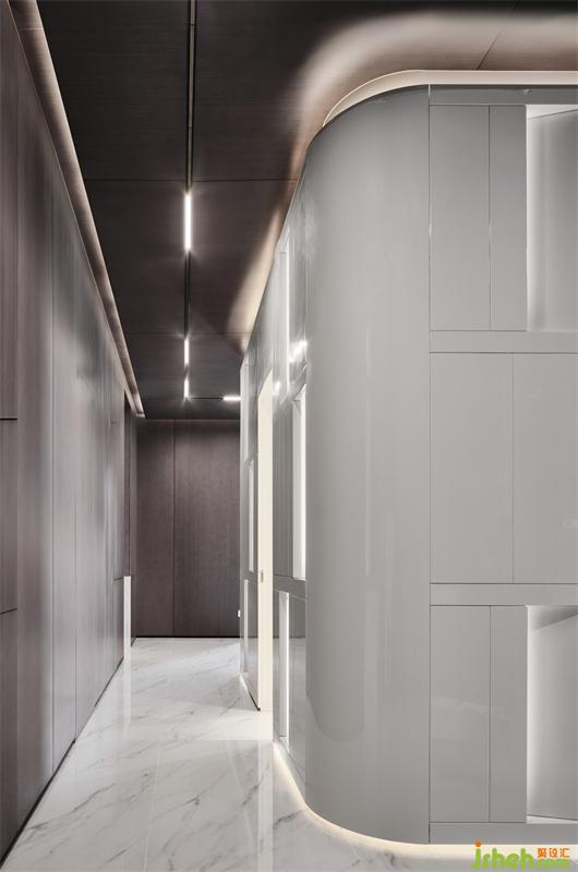 穿過前院,拾階而上,遇見一隅讓人重獲力量的安適,莫爾說:走遍天涯覓不到自己所需的人,回到家就發(fā)現(xiàn)它了。進入門廳,獨棟別墅設計環(huán)形藝術裝置“白盒子”相迎,純粹且融洽的幾抹燈光,便令居者有洗盡鉛華,回歸生活之感。