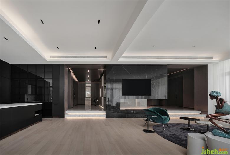 抬眸,在電視墻反射作用下視野盡情延展,勾勒出空間的精巧布局,游走于此,在與空間的交流中,不經意流露出細節(jié)帶給居者的無盡享受。