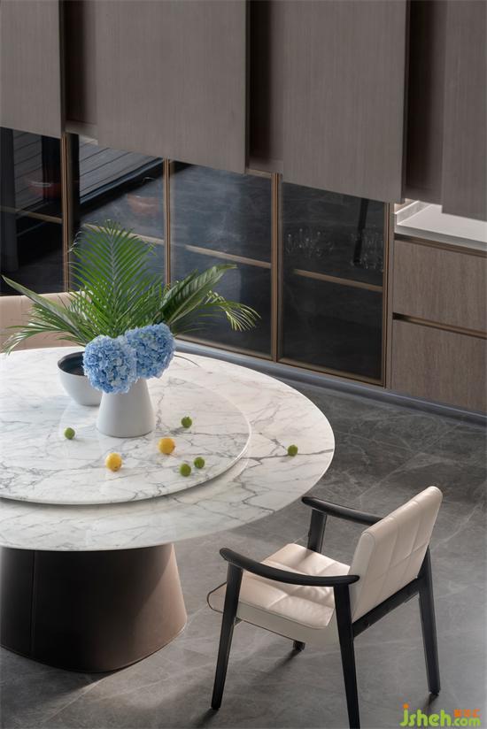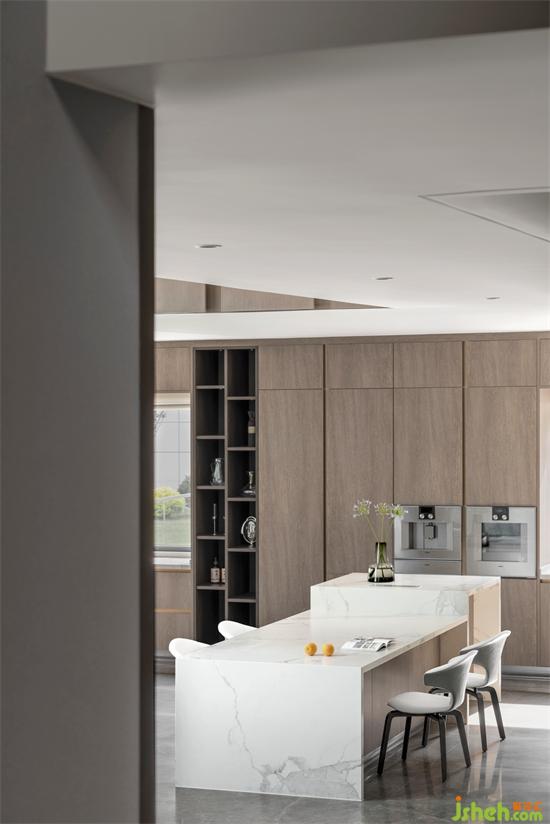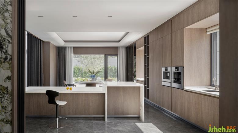 任何家宅,皆需回歸一日三餐。權(quán)衡三代人飲食需求后,別墅設(shè)計(jì)中我們?nèi)谌胫形麟p廚房。L型中式雙動(dòng)線廚房集洗、切、炒、煮黃金動(dòng)線于一體,讓整個(gè)烹飪過(guò)程一氣呵成。西廚島臺(tái),無(wú)論煮咖啡、制作簡(jiǎn)餐、烘焙均可滿足。