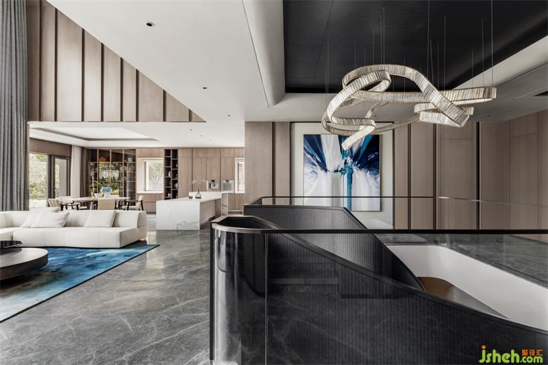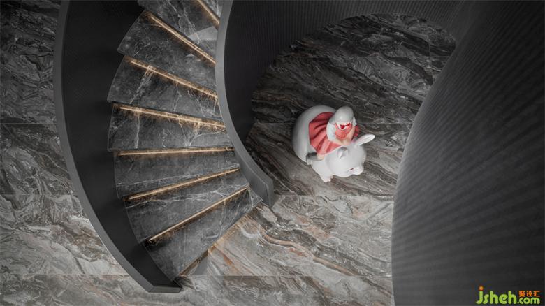 在樓梯設(shè)計(jì)中,我們改變?cè)挤忾]式直角樓梯,別墅設(shè)計(jì)將四周墻體完全打開(kāi),以開(kāi)放式旋轉(zhuǎn)樓梯代之。一來(lái)消除上下樓的隔絕感,二來(lái)增大空間的互通性。