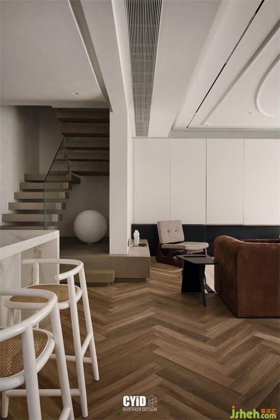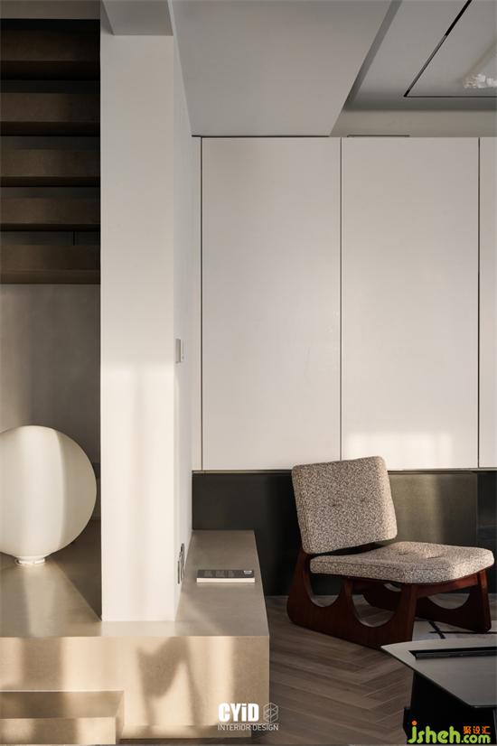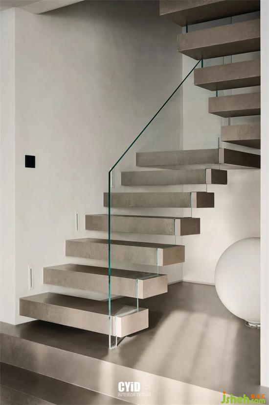 步步階梯回旋而上,優(yōu)美流線與步階的鏤空形態(tài)層層延伸,現(xiàn)代法式設(shè)計(jì)映入透明玻璃的光影留痕于步階的間隙,影影綽綽間更顯曼妙韻味。