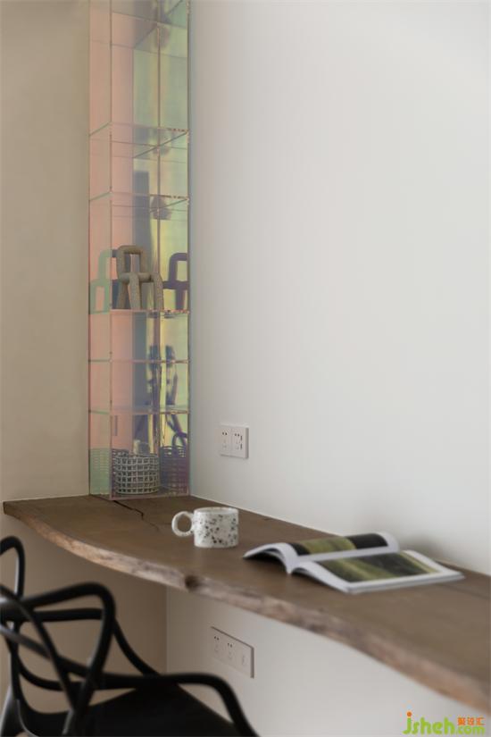 空間跳躍出斑斕的的藝術(shù)品擱架,江景大宅設(shè)計(jì)其中的趣味隨即展現(xiàn)。跳脫色彩的引入,體塊、線條、造型的運(yùn)用,攜帶著光和影,在此間自由穿梭,生活的意趣就此彌散在臥室的每一個(gè)角落。