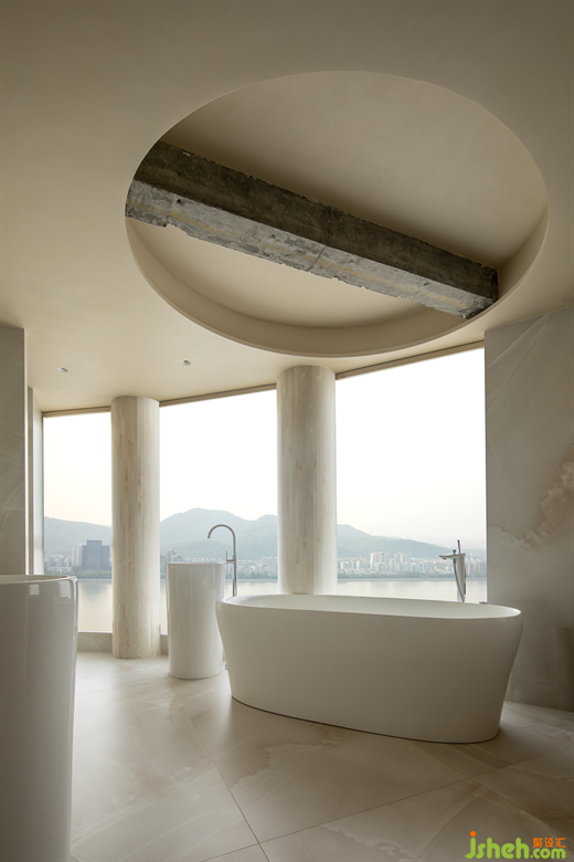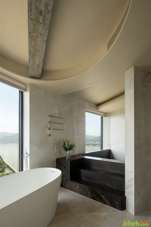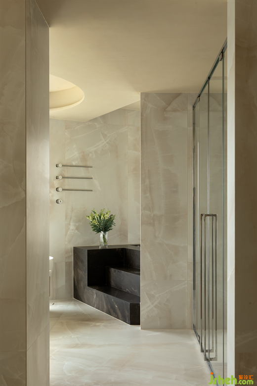 (主衛(wèi))綿延一片的素凈,肌理融合在空間氛圍之中,流暢的動線和寬闊的視野賦予空間通透明朗,大宅設(shè)計大面積投入的自然光線讓整個空間有了呼吸,一個放松且無限創(chuàng)意的環(huán)境由此形成。