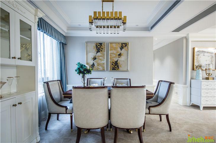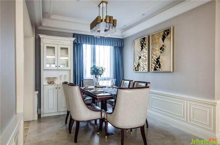 在客廳,素雅的墻紙與墻板線條之間勾勒出沉穩(wěn)與活力的交織,形成一片嶄新風格;地面暖白闡明格調(diào)的極簡美態(tài),留白的空間映襯裝飾鮮艷的金屬,提一抹質(zhì)感時尚的金色為環(huán)境進行藝術(shù)加持,優(yōu)雅從容,精致如女主人。黃銅的精彩應用,盡情演繹了材質(zhì)和精湛工藝所承載的文化和創(chuàng)意。完全開放式的設(shè)計,讓餐廳通透舒展。美學的細膩與干凈利落兩種矛盾屬性的碰撞,如居者所期許的那般,生發(fā)出了雋永的意味。