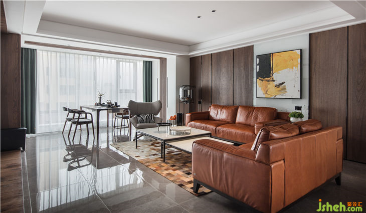 沙發(fā)背景采用大面積的木飾面設計,中間鑲嵌一塊超白玻給人以一種溫潤的氛圍,軟硬結合,無主燈的設計讓整個空間顯得干凈整潔。選擇皮質(zhì)沙發(fā),就是喜歡其硬朗的材質(zhì),雖有微微的褶皺,顯得不是那么的完美,但這就是生活的樣子。