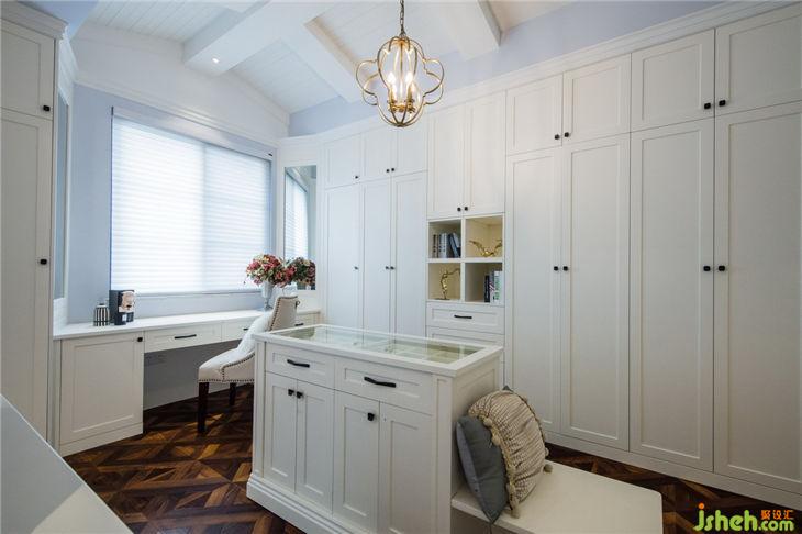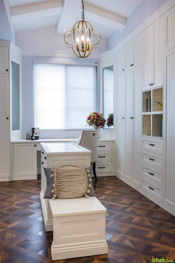 臥室與開放式衣帽間相結(jié)合,不僅通透了整個空間,且進(jìn)一步提升采光與通風(fēng)。深咖色的地板與亞光白的柜子形體簡約且不失質(zhì)感,帶來的不只是視覺上的素雅輕奢,更有著觸覺上的細(xì)膩柔和、親切、與自然舒適。整體衣柜外加中島儲物格兼具實用性與美觀性,設(shè)計師在尺度比例、材質(zhì)工藝的選用上都進(jìn)行了細(xì)致充分的考量,有著干練、和恰如其分的極致感。