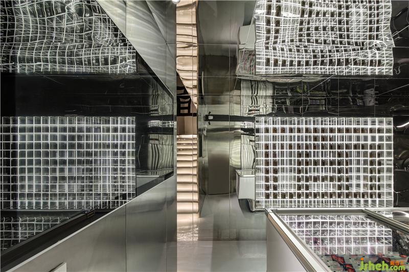 此次之外,鏡面另外一個作用是打開空間。大面的鏡子會讓原本狹小的空間顯得更大,尤其是當(dāng)鏡子覆蓋整面墻壁時,營造出建筑內(nèi)部空間的開放感店鋪設(shè)計,進一步弱化了店面僅有50平方米的缺陷,讓用戶體驗更好的空間感。