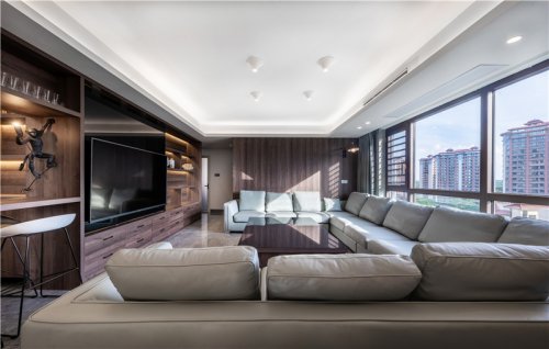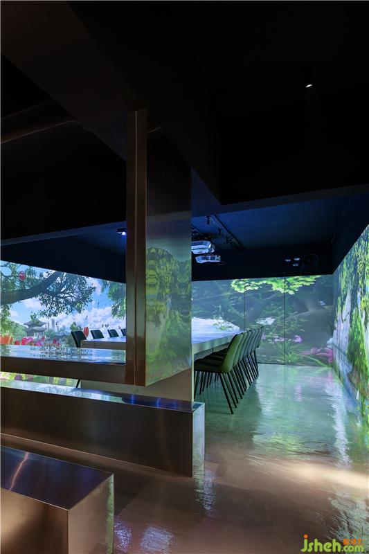 最后一個亮點是其270°液晶投影的設(shè)計,2樓由于天生環(huán)境封閉,這樣的空間讓大部分感覺到不舒適。設(shè)計師針對這個弊端,大膽采用現(xiàn)代化投影設(shè)備進行裝飾深圳裝修設(shè)計,讓封閉的空間瞬間成為無限可能,山、湖、海、草原、落葉、飄雪,一切隨心而動。