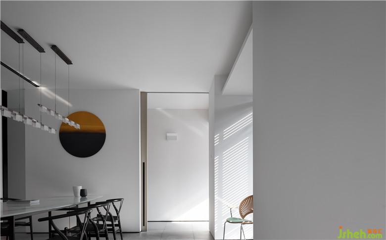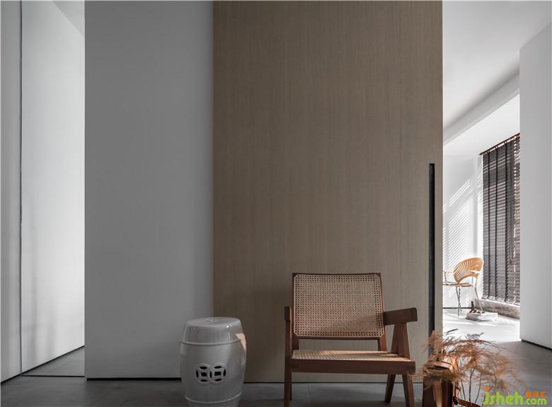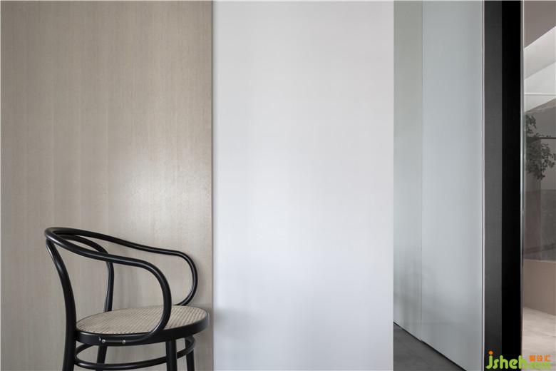開門見境,玄關(guān)造景,以“樹”塑造空間安靜的氛圍,玻璃磚墻后引介光與影。