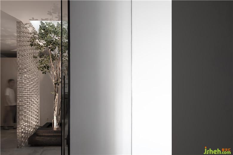 在會議室和會客室空間的規(guī)劃上,采取開放式手法,開放與封閉的不同狀態(tài)可自由轉(zhuǎn)換,門的開合之間及玻璃隔斷的通透感,達到內(nèi)外空間的對話。在這個空間的容器中,大面積的留白,借景及光影,通過不同物品的屬性,營造一種靜謐空間氣質(zhì)。