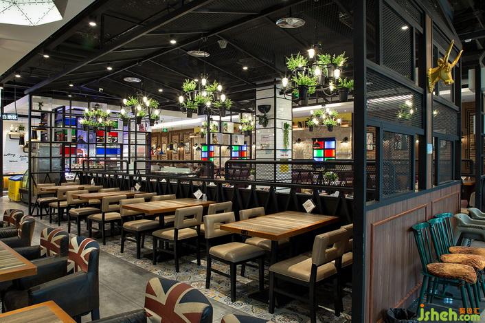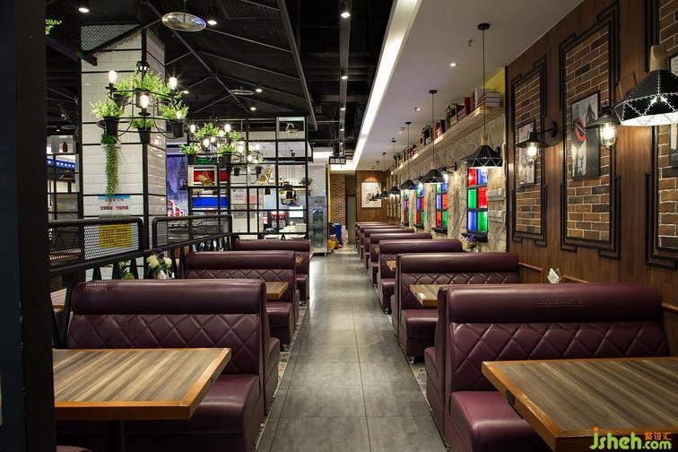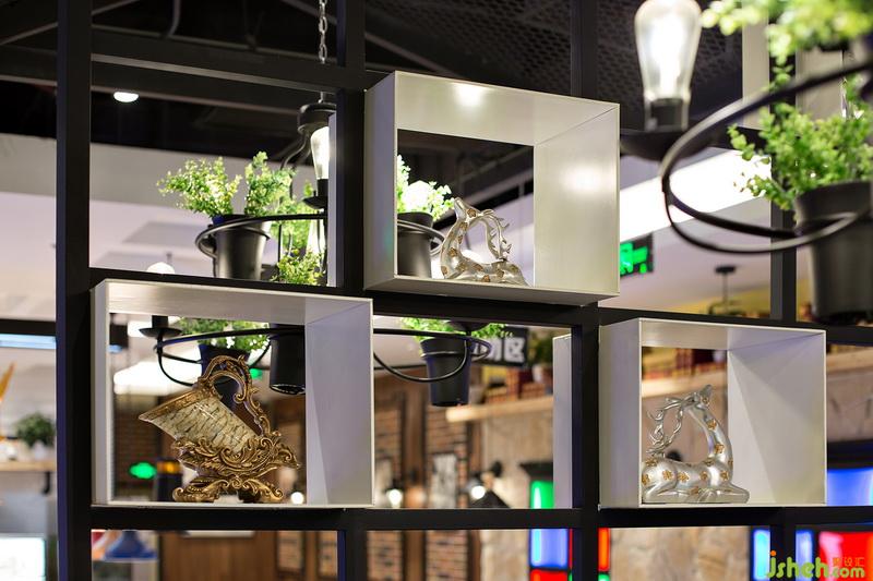 本案營造的主題就是回歸自然、悠閑的用餐環(huán)境。設(shè)計特點:整體以輕工業(yè)風(fēng)作為裝修風(fēng)格,墻面利用文化磚結(jié)合木紋材質(zhì)的墻面裝飾,為空間添增樸實而個性的氣息。餐廳大面積墻面以白色文化磚為基調(diào),同時用硅藻泥搭配藍色和黃色的墻面造型,客座中心區(qū)域以亮麗的工業(yè)風(fēng)帶綠植燈飾裝飾,顯得空間更加層次感,清新感。餐桌選擇以木質(zhì)材質(zhì),清晰可見的木紋,更加傳遞出回歸自然的氛圍。