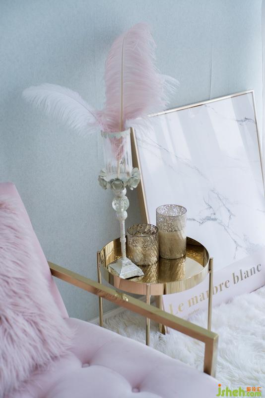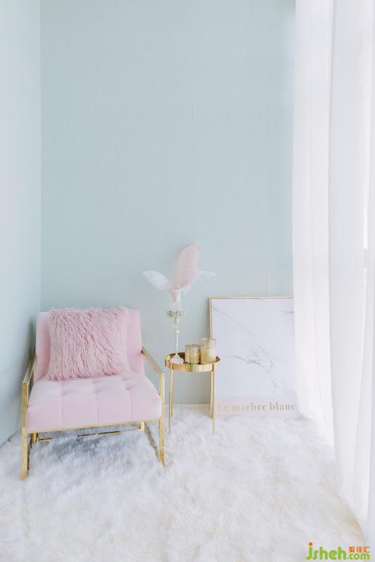 少女粉的座椅、金色復(fù)古的燭臺、輕柔的白色紗簾充構(gòu)成滿滿的慵懶少女氣息。室內(nèi)設(shè)計師