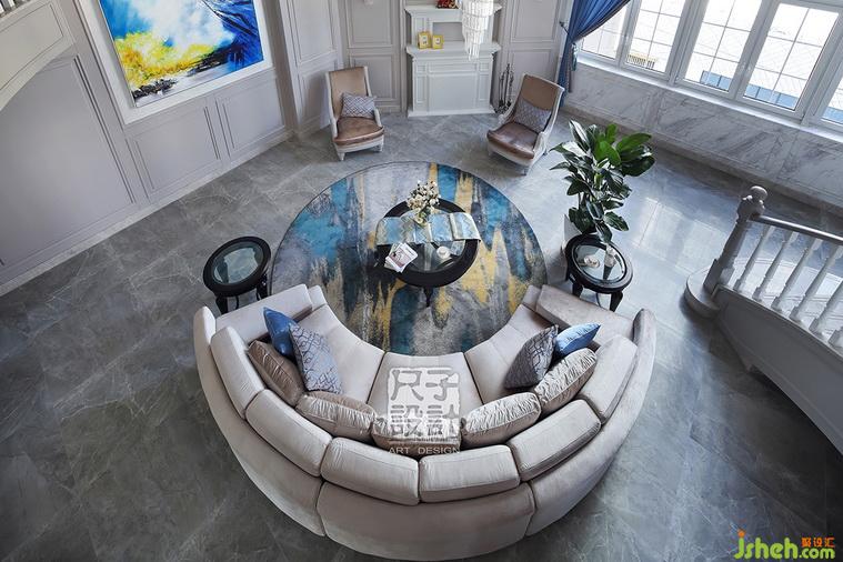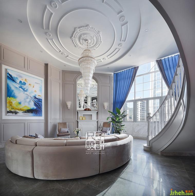 俯視之,客廳之景盡收眼底,非凡的氣度與品質(zhì)感將人包裹其中。