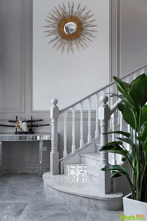羅馬柱護(hù)欄,以優(yōu)美的曲線,淳厚的質(zhì)感,俘虜著拾階而上的步伐;古典溫馨的氣韻,伴隨著旋轉(zhuǎn)樓梯,蜿蜒在整個(gè)空間,連貫始終。