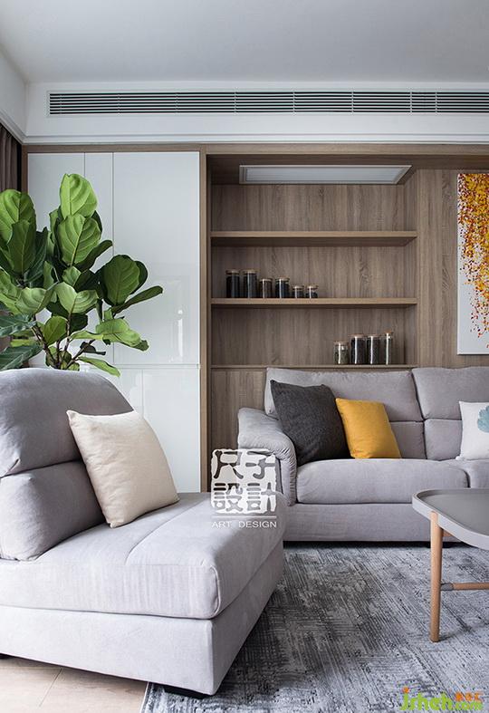 客廳設(shè)計絲毫不張揚,達(dá)到“以簡勝繁”的效果;用少量的造型表現(xiàn)形式來滿足環(huán)境的營造;整面儲物柜簡潔實用,開放與封閉式相結(jié)合,不顯單調(diào)。