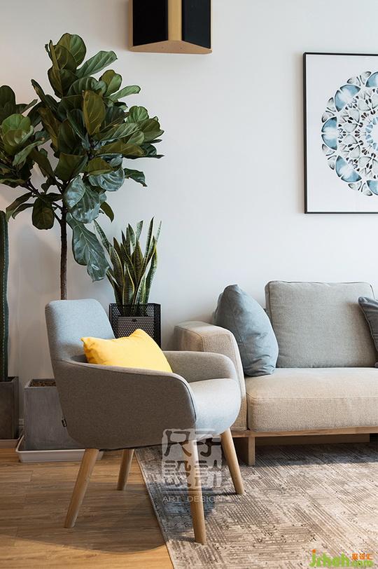 簡單的黑白灰與原木色的搭配,構成了客廳文藝溫馨的色彩基調,綠色植物作為點綴,整個空間更欣欣向榮。設計公司