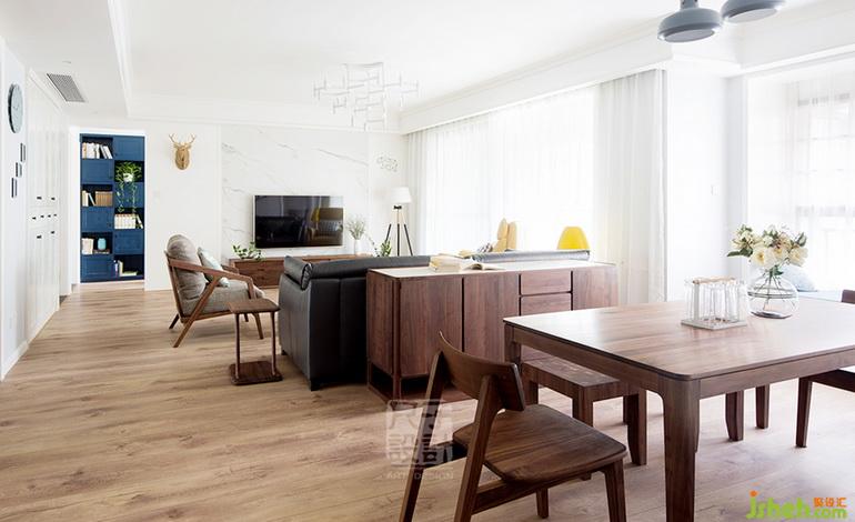 客餐廳原白色天花、淺灰墻面與原木色地板結(jié)合,形成空間色系的層層遞進(jìn);設(shè)計(jì)公司