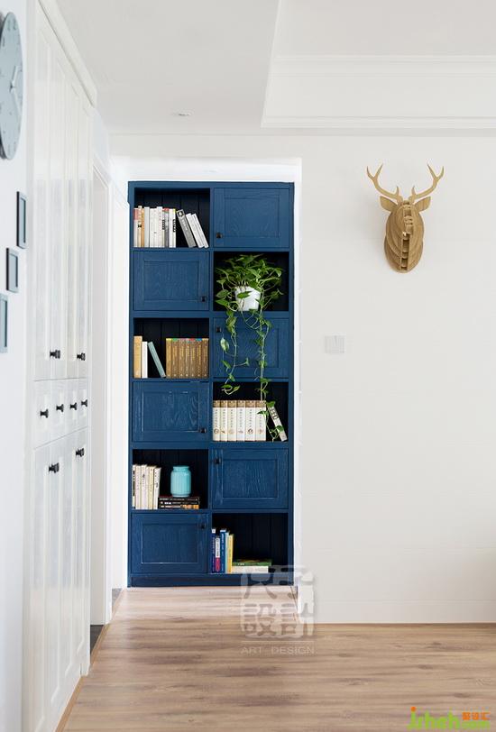 貌似不經(jīng)意的搭配之下,高純度藍(lán)色端景柜牢牢抓住我們的視線。設(shè)計(jì)公司