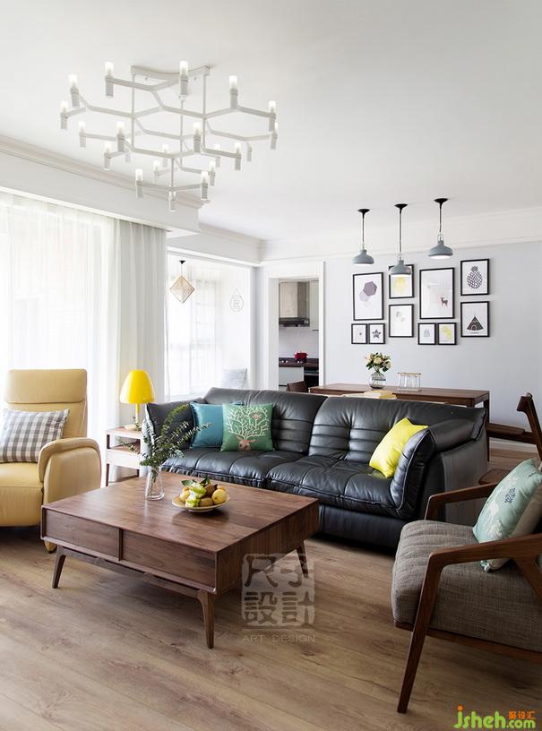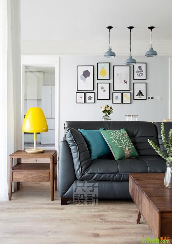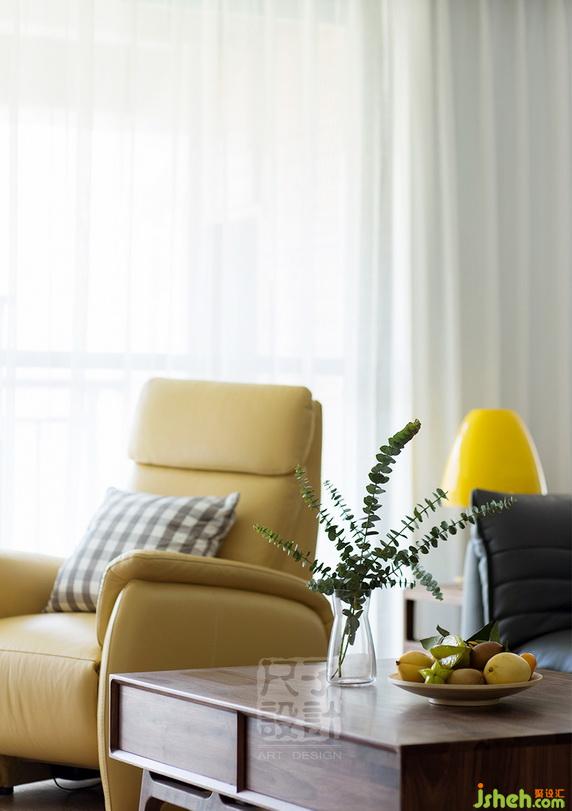 灰藍(lán)色真皮沙發(fā)呼應(yīng)煙灰色的吊燈;明黃色的休閑椅與臺(tái)燈相映成趣,任何一處的小搭配,展現(xiàn)一種樸素清新的原始之美。