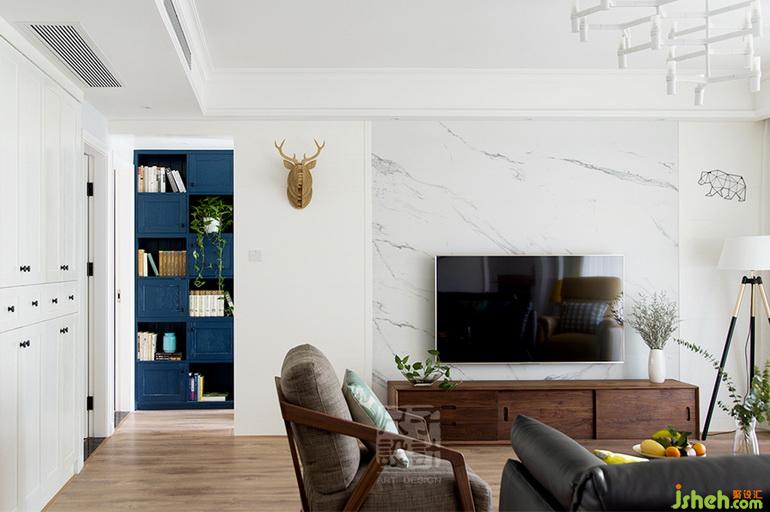 兩側(cè)是獨(dú)具特色的鹿頭墻飾與線條拼接出的熊形裝飾,簡(jiǎn)單精致。細(xì)節(jié)處盡顯北歐風(fēng)情。