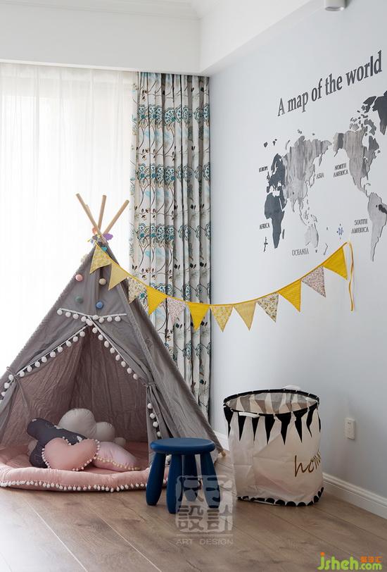 可愛的兒童凳、灰色小帳篷讓活動房成為孩子最喜愛的游樂場。