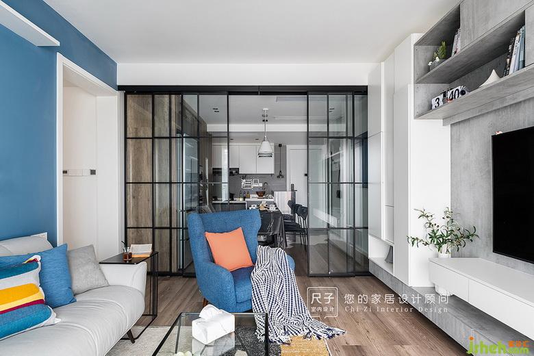在灰色的空間底色中,愛馬仕橙與灰藍(lán)碰撞出一種居家活力感。