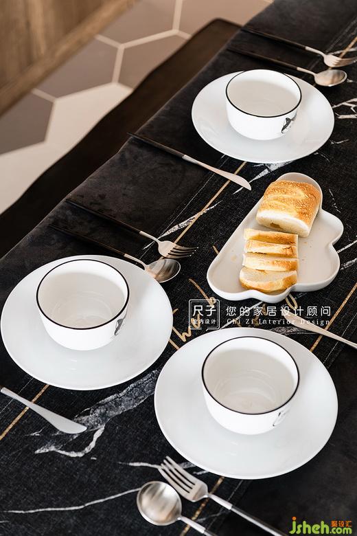 餐廳不僅是簡(jiǎn)單用餐的地方,更是充滿儀式感的交流空間;六角磚的幾何性與木地板的舒適感對(duì)撞拼接,美感十足,讓空間耳目一新。