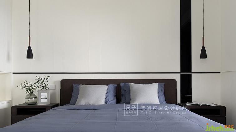 主臥床頭以護(hù)墻板跳接黑鏡設(shè)計(jì),延續(xù)主人喜愛的黑白時(shí)尚。