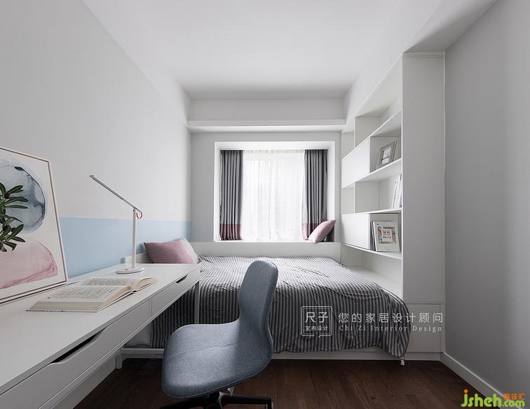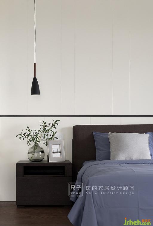 墻面做了墻漆分色處理,高級灰+低純度的藍(lán),文藝又清新;裝飾畫、抱枕以及窗簾色彩與空間主色相呼應(yīng),營造溫馨自然的感覺。