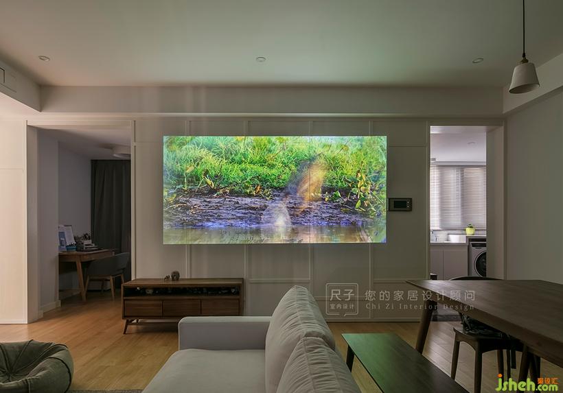 一家人的觀影時(shí)光總是溫馨的。我們將小孩房的房門做了隱形設(shè)計(jì),讓畫(huà)面透過(guò)投影儀投射在這一整面完整的白墻上,客廳變身為家庭影院;一家四口依偎在沙發(fā),或側(cè)臥在飄窗,在這個(gè)無(wú)需拘束的家中,來(lái)一場(chǎng)電影派對(duì)。