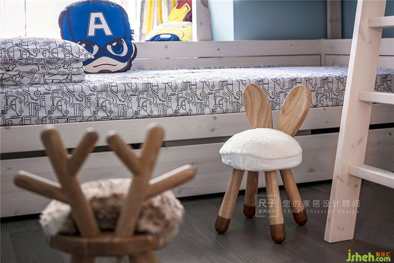 為滿足兩個孩子的睡眠以及未來成長的需求,小孩房選用了成品的活動床、書桌椅,待未來孩子長大也方便改換。
