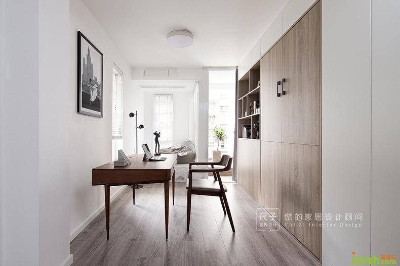 入戶右轉(zhuǎn)便是這個(gè)家的書房空間,關(guān)上門,屋內(nèi)是一個(gè)靜謐的獨(dú)立空間,打開門,書房又能與主空間相連接。