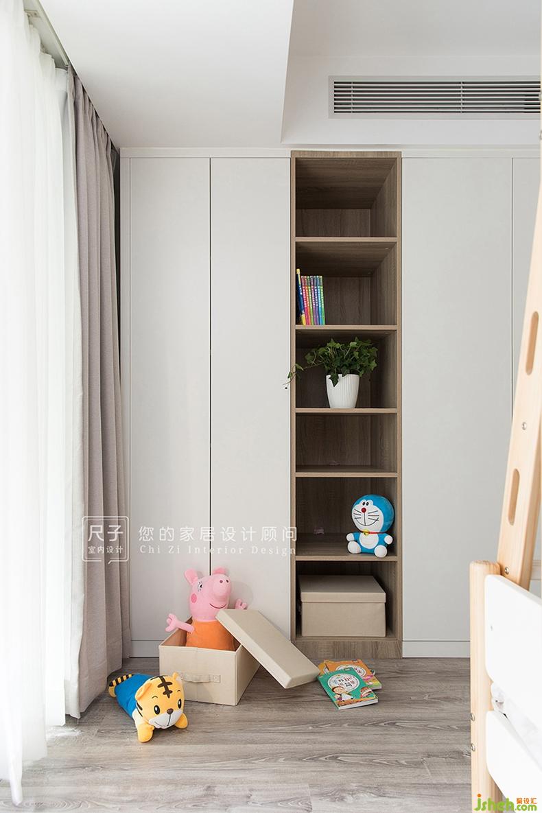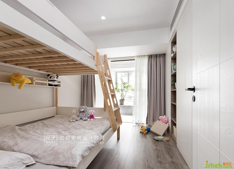 小孩房以上下床設(shè)計(jì)實(shí)現(xiàn),整體色調(diào)清雅,給孩子營(yíng)造一個(gè)安靜舒適的睡眠空間。