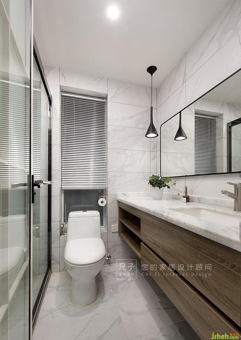 秩序感十足的瓷磚與溫暖的木色,構(gòu)成了簡(jiǎn)約實(shí)用的衛(wèi)浴空間。