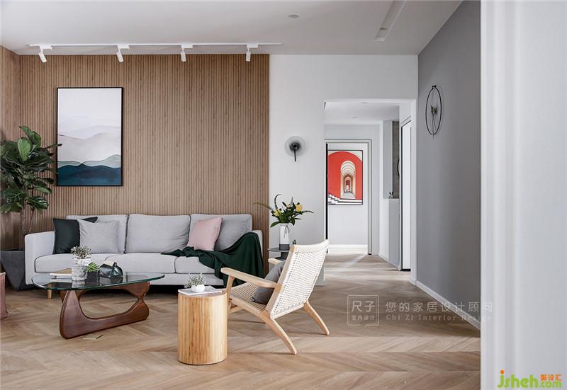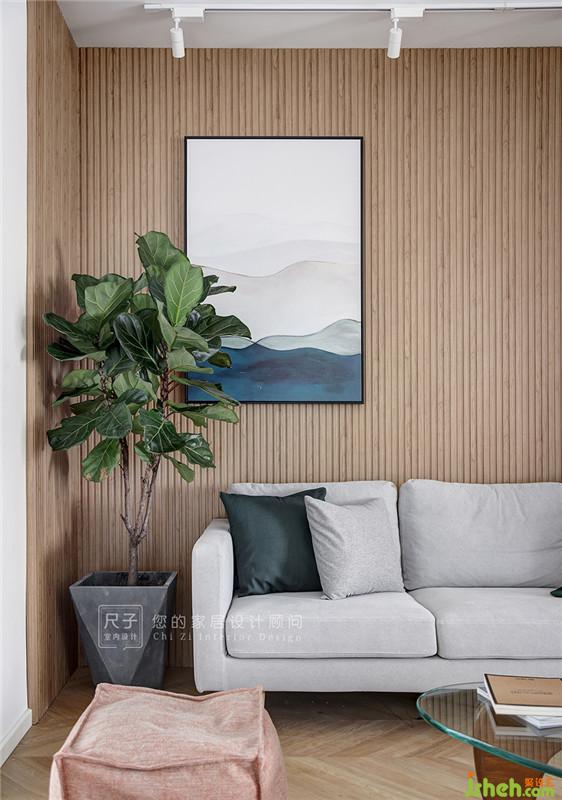以L型長城木包裹沙發(fā)背景墻,縱向紋理讓空間更顯挺拔,使居住者在客廳活動時,享受木色圍合帶來的溫馨氛圍。