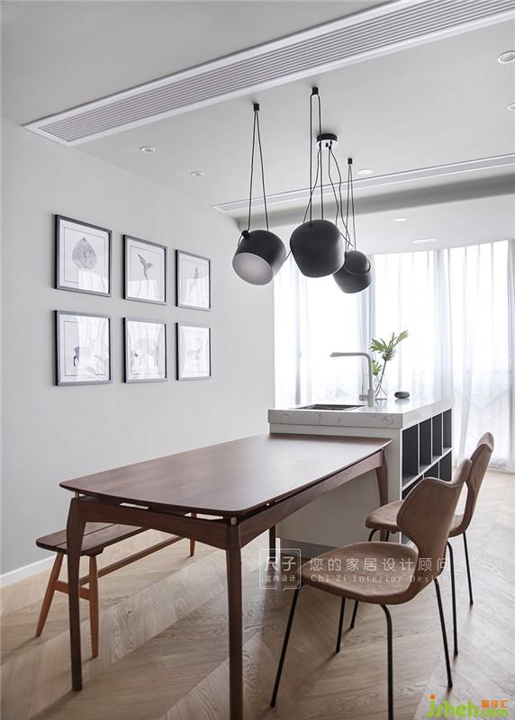 將陽臺(tái)封入室內(nèi),餐廳收獲了圓弧落地窗以及一室陽光,有風(fēng)有景,用餐時(shí)光也變得悠閑起來。吧臺(tái)設(shè)計(jì)有著巧妙的構(gòu)思,下方收納格讓其能承擔(dān)起餐邊柜的作用。